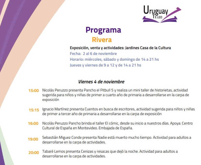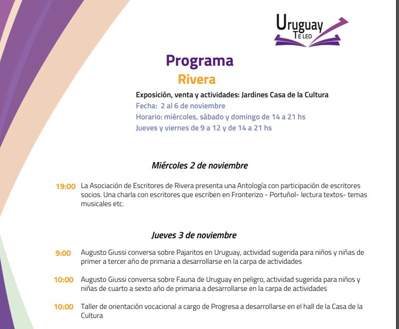 PROGRAMA DE ACTIVIDADES FERIA DEL LIBRO RIVERA
